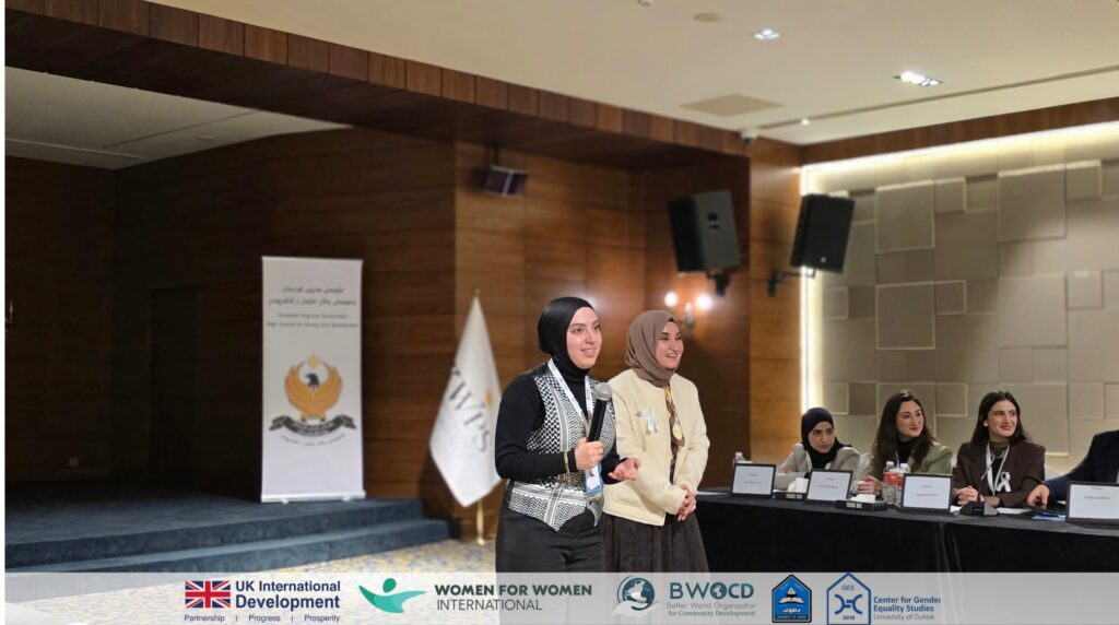 On 10 February 2026, The Better World Organization for Community Development (BWOCD), in partnership with the Center for Gender Equality Studies at the University of Duhok, and in coordination with the High Council for Women and Development, organized a roundtable discussion titled “From Presence to Power: Advancing Women’s Active Participation.” The event was supported by the Foreign, Commonwealth & Development Office (FCDO) through Women for Women International.